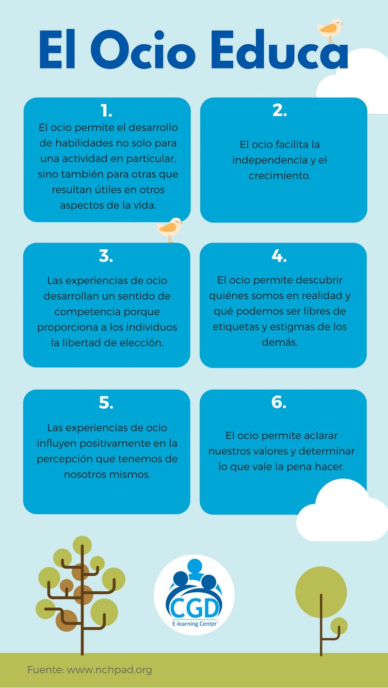 Hay que dejar de encasillar la educación en los formalismos de un lugar físico y dar también importancia a otros tipos de aprendizaje que preparan para la vida social. El ocio y el tiempo libre, las actividades recreativas, además de generar beneficios físicos y psicológicos, también resultan educativas, lo hemos mencionado antes, aportan al crecimiento personal, pero además contribuyen al desarrollo de habilidades. A continuación las razones por las que el ocio puede ser educativo, más aún cuando nos referimos a las etapas de la infancia y juventud: