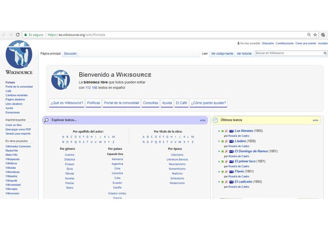 Es una web que recopila y difunde obras que están ya libres de derechos de autor. Es de fácil navegación y te enseña la bibliografía del autor e información de las obras.