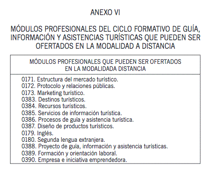 Relación de asignaturas del Ciclo Formativo Oficial en Guía, Información y Asistencia Turística